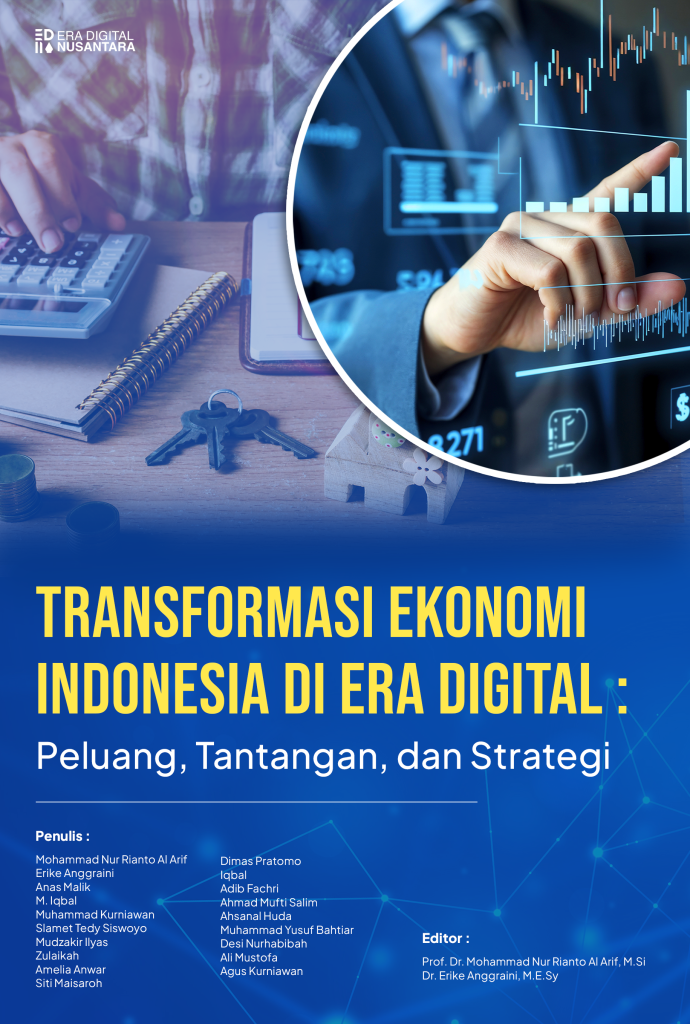 Transformasi Ekonomi Indonesia di Era Digital: Peluang, Tantangan, dan Strategi merupakan buku akademik yang mengkaji secara komprehensif dinamika perubahan ekonomi Indonesia akibat percepatan digitalisasi. Buku ini membahas konsep, karakteristik, serta implikasi ekonomi digital terhadap pembangunan nasional, mulai dari infrastruktur teknologi, sistem pembayaran, fintech, e-commerce, ekonomi kreatif, hingga kebijakan dan regulasi. Secara khusus, buku ini juga menyoroti penguatan ekonomi dan keuangan syariah digital, termasuk zakat, wakaf, dan pasar modal syariah. Dengan pendekatan multidisipliner dan berbasis analisis empiris, buku ini menawarkan strategi kebijakan dan rekomendasi praktis untuk mewujudkan transformasi ekonomi digital yang inklusif, berdaya saing, dan berkelanjutan menuju Indonesia Emas 2045.